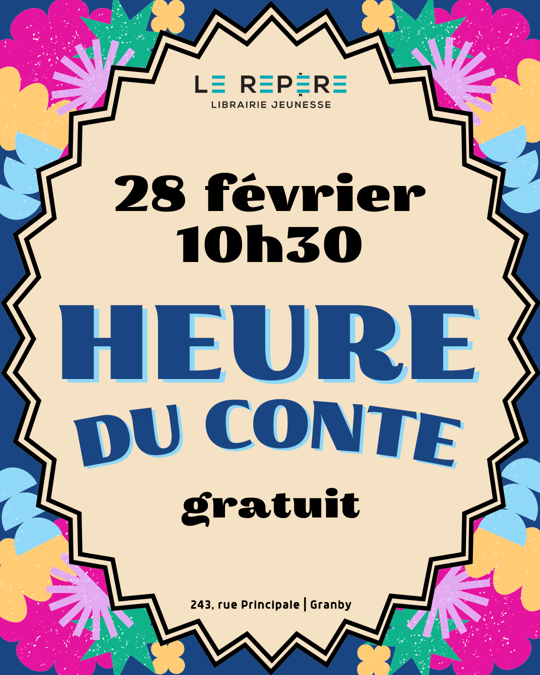 Joignez-vous à nous le samedi 28 mars pour une heure du conte. Un beau moment en famille!...